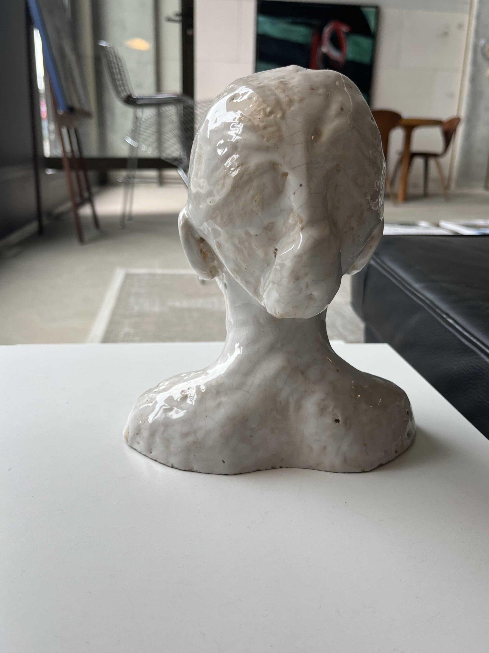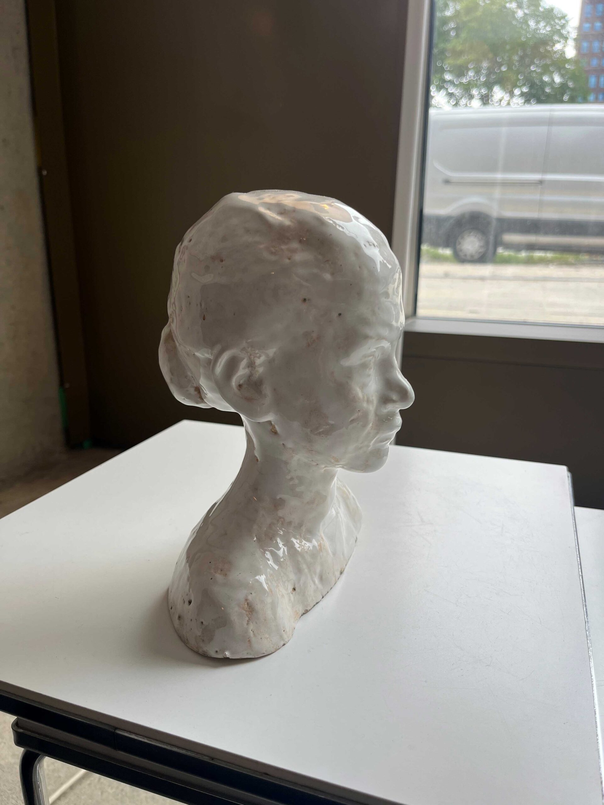 Keramieken beeldje van een jonge vrouw met knotje. Met wit glazuur afgewerkt. Mooi en subtiel.