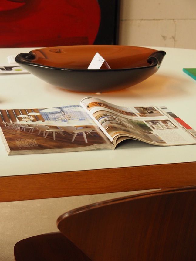 Bruin glazen schaal met aan 2 zijdes een vouw naar binnen. Toegeschreven aan Seguso Vetri d’Arte, geen label aanwezig. In zeer mooie staat.